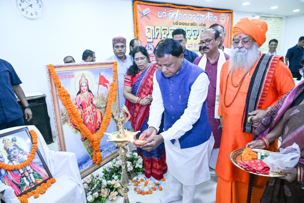 ଧର୍ମ ଜାଗରଣ ସମିତି, ଓଡ଼ିଶା ପକ୍ଷରୁ ଆଜି ଭୁବନେଶ୍ବରର କଟକ ରୋଡ ସ୍ଥିତ ତେରାପନ୍ଥ ଭବନ ଠାରେ ଆୟୋଜିତ ଶ୍ରୀମଦ୍ ଭାଗବତ ମହୋତ୍ସବରେ ମୁଖ୍ୟମନ୍ତ୍ରୀ ମୋହନ ଚରଣ ମାଝୀ ଯୋଗ ଦେଇ ପ୍ରତ୍ୟେକ ଓଡ଼ିଆ ଘରେ ଭାଗବତ ଏବଂ ପ୍ରତ୍ୟେକ ଗାଁର ଭାଗବତ ଟୁଙ୍ଗି ମାନଙ୍କର ପୁନରୁଦ୍ଧାର ଓ ପ୍ରତିଷ୍ଠା କରିବା ପାଇଁ ରାଜ୍ୟ ସରକାର ପ୍ରତିଶ୍ରୁତିବଦ୍ଧ ବୋଲି କହିଥିଲେ। ମୁଖ୍ୟମନ୍ତ୍ରୀ ଏହାଏ ମଧ୍ୟ କହିଥିଲେ ଯେ ଯୁବବର୍ଗ ଆଜିର ସମାଜର ସମସ୍ତ ବିକାଶରେ ମୁଖ୍ୟ ଭୂମିକା ନିଭାଇଥାନ୍ତି ଏଣୁ ସେମାନଙ୍କୁ ଏହି ମାର୍ଗରେ ନେବା ପାଇଁ ଭାଗବତ ପାଠ ଏକ ବଳିଷ୍ଠ ମାଧ୍ୟମ।